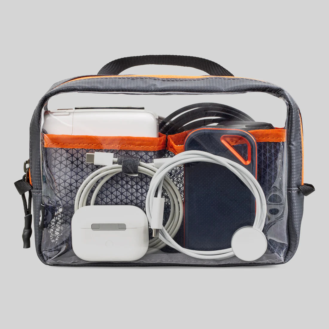 This self-standing pouch is made with transparent PEVA sides for easy TSA checks, and even easier morning routines. Inside, mesh dividers keep things sorted—whether it’s travel-size toiletries, wily charging cords, or keeping track of the correct international adapter. Quick to grab, easy to clean, and always ready for takeoff.