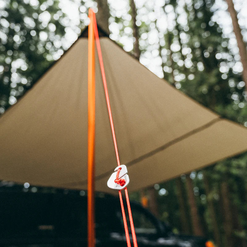 Simple and durable - These aluminum guyline tensioners make setting up camp easy by securing tents, tarps, and clotheslines with just one overhand knot. Compatible with 2mm cord and guylines, with illustrated instructions printed on each tensioner. Comes with a pack of 4.