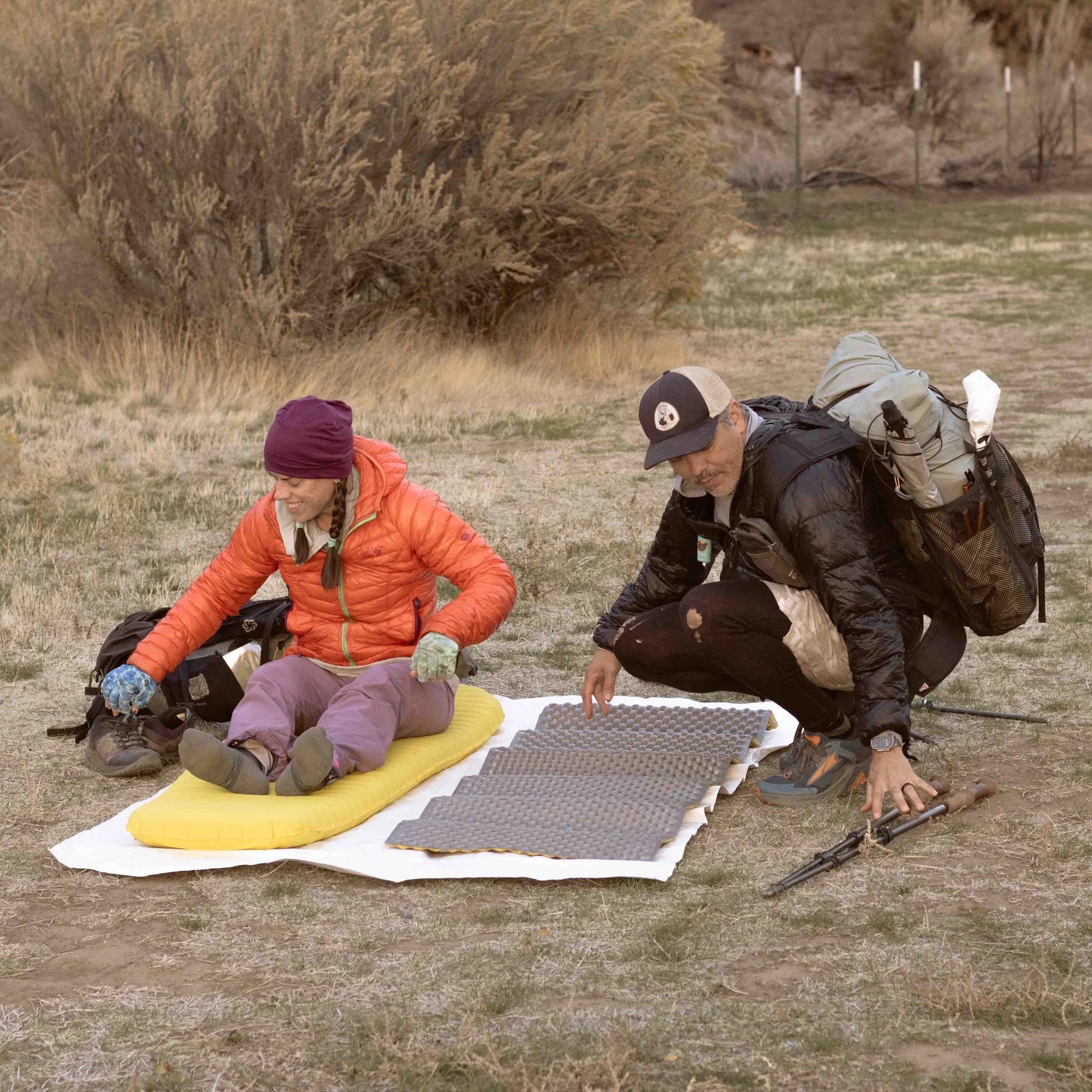 The Pardner’s Pad is a two person footprint cut for nights spent side by side with an adventurer sharing the same trail. It’s built to protect your sleeping set up from the ground whether you pitch a tent or sleep beneath a spread of stars. Made of our tough, lightweight flashspun fabric, it’ll shield your air mattress without weighing down your pack as you follow the long trail on.