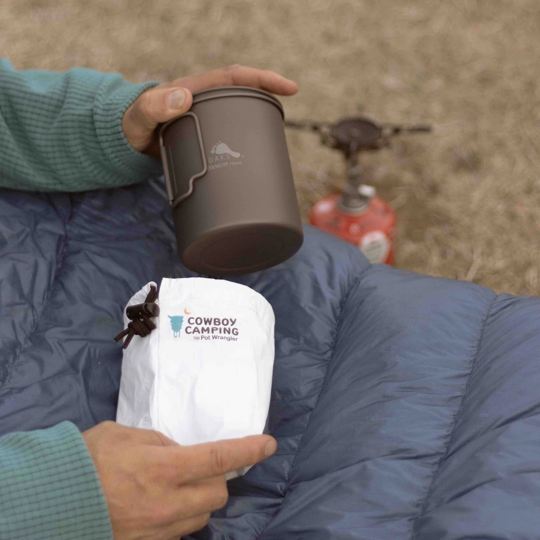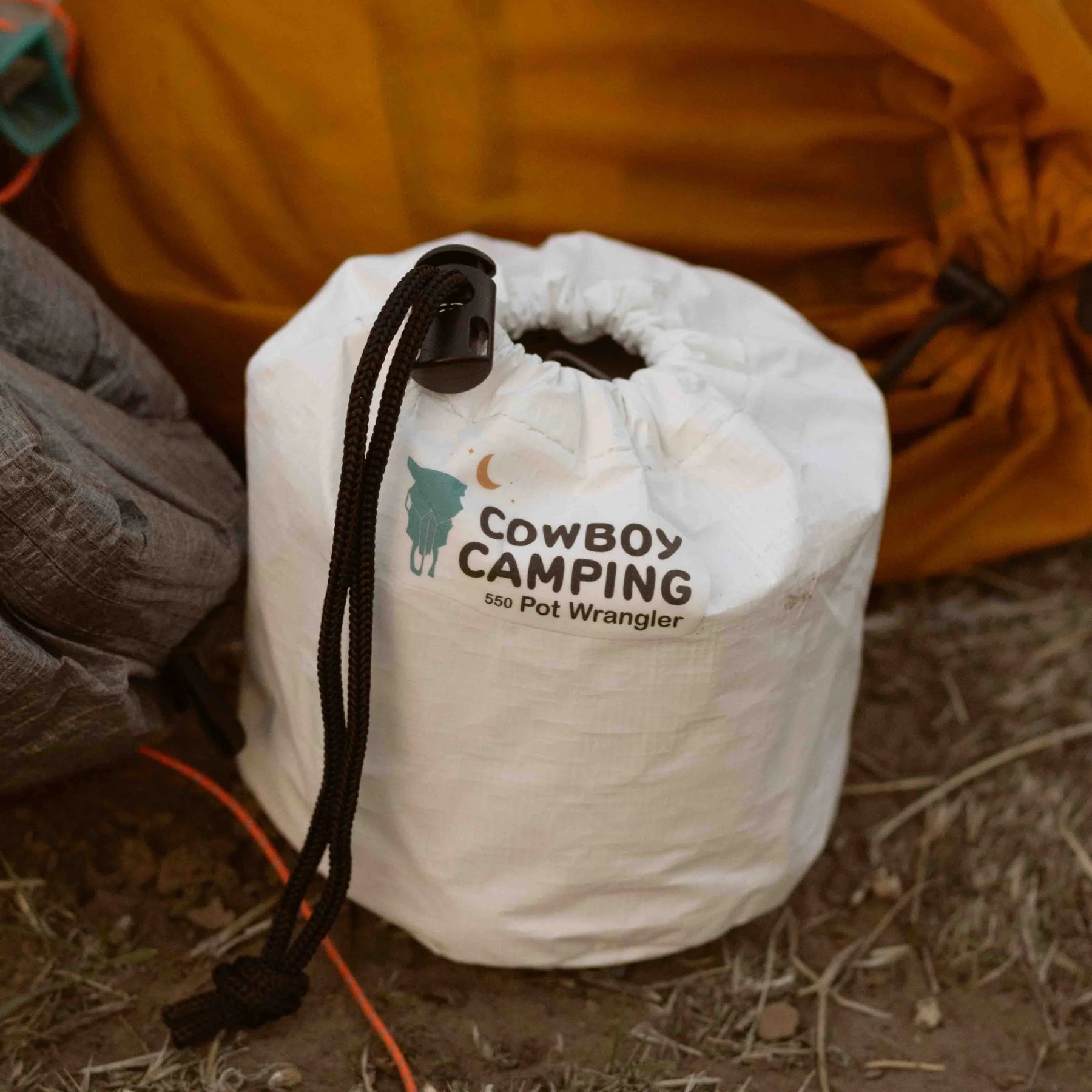 Look after your cook pot. The Pot Wrangles are made to corral three common backpacking pot sizes—550ml, 650ml, and 750ml—keeping your kitchen kit in line. They feature a drawstring top that cinches tight, holding your pot, lid, and whatever you’ve got tucked inside safe and sound as you move on down the trail.