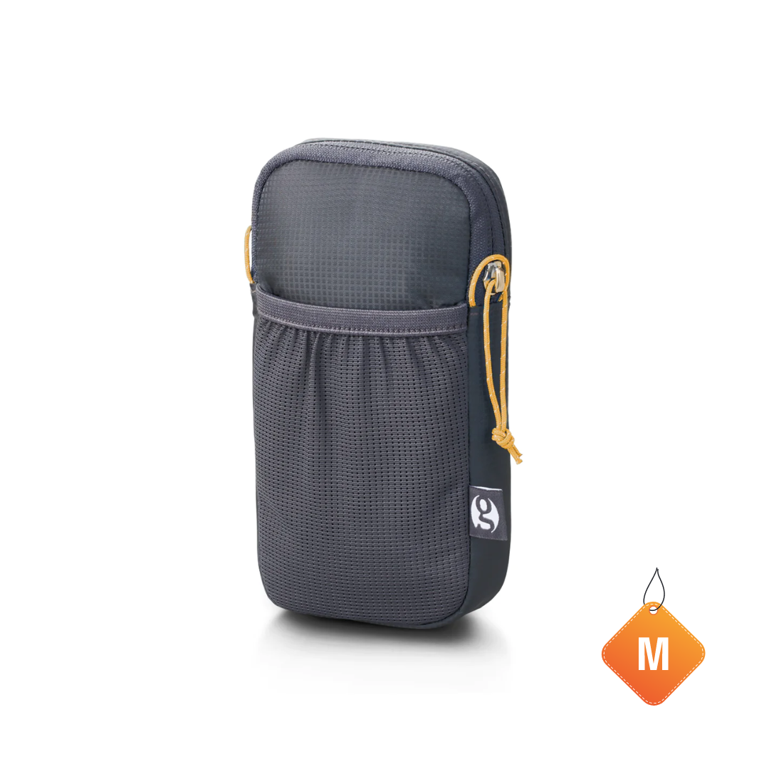 This simple easy to use shoulder strap pocket, while designed with our hiking packs in mind, will fit on most any pack. With a wide opening zipper and a wee bit of foam to help it hold it shape make it very easy to access your goods. The plush soft interior liner is protective . This pocket attaches securely and easily with one vertical strap and two horizontal wrapping wings. A front mesh stretch pocket makes it the perfect extra storage pocket.
