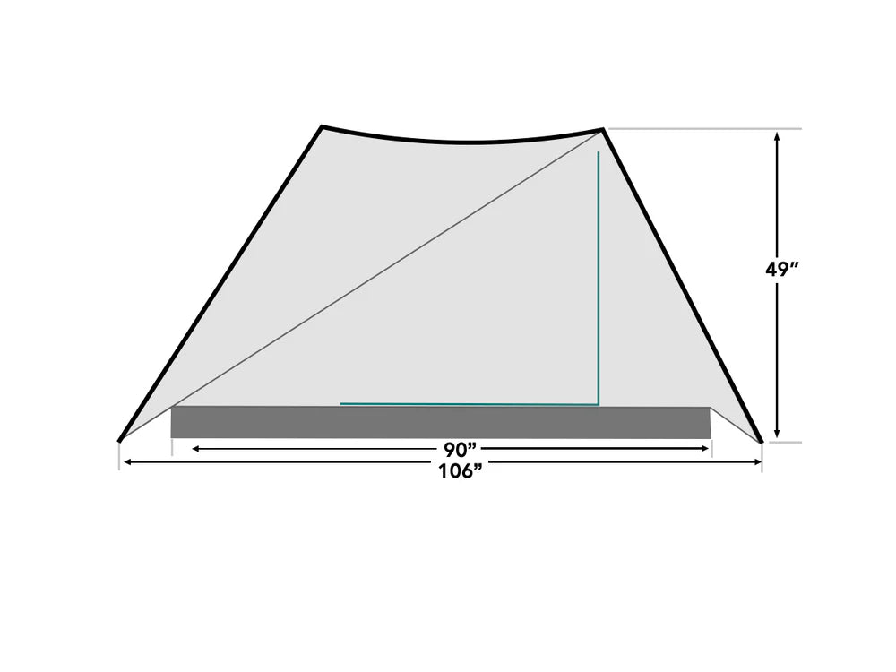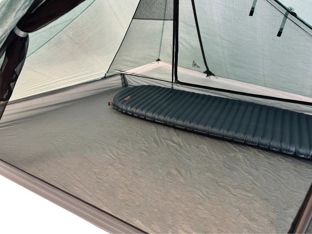 Compared to the regular X-Mid Pro 2, the floor has been widened from 46" to 52" (1.32m) to accommodate all wide (25" / 64 cm) pads. This makes it the world's lightest tent that can fit two wide pads (based on the tent weight + minimum number of stakes). The already excellent headroom has also been increased with a taller 49" (1.24 m) peak height. This adds headroom and also steepens the end walls to increase the useable length for hikers up to 6'6". We also reduced the rotation of the diagonal ridgeline to create more even headroom on both sides to optimize the tent for two people sleeping in the same direction. Compared to competing A-frame style tents, both sides of the X-Mid Pro 2+ have substantially more head clearance.